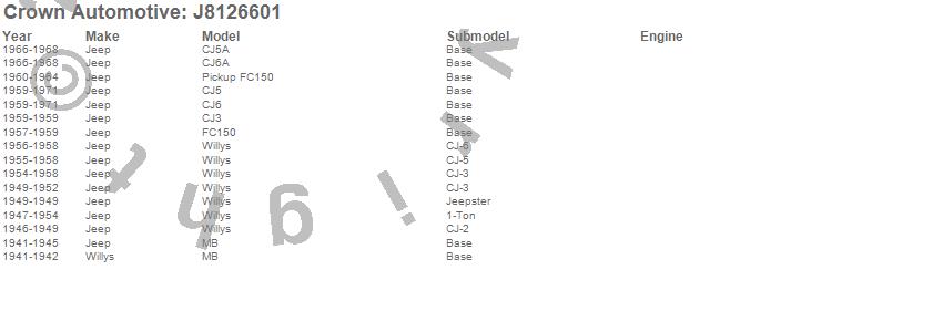 Crown Automotive is the premier manufacturer and distributor of quality replacement parts for Jeep® CJ™, Wrangler™, Cherokee™, Grand Cherokee™, Liberty™, and Commander™."From humble beginnings in 1963 in a small Boston storefront, Crown Automotive has consistently maintained its commitment to offering only quality parts and exceptional service. Today, with warehouses in Massachusetts, Georgia, Nevada, Spain, and the Czech Republic, totaling over 160,000 square feet, Crown Automotive continues to be the leader in quality replacement parts for Jeep® vehicles. With over 8,000 different parts in stock for Jeep® vehicles from 1942 on up, Crown has the largest stock of replacement parts for Jeep® vehicles, including factory-discontinued parts. In fact, many of the older Jeeps are still on (and off) the road thanks to Crown parts. The Crown line consists of axle, body, brake, clutch, cooling, driveline, electrical, engine, exhaust, fuel, steering, suspension, transmission and transfer case components. Crown Automotive also offers an exclusive line of component kits and accessory products. Because we know that Jeeps are driven harder than most other vehicles, we emphasize offering only quality parts. In fact, we test parts on Jeeps before distributing them to our dealers to insure that they meet our standards for quality. Crown also supports its entire line with a 12 month/12,000 mile warranty to insure our dealers and their customers of our commitment to offering quality parts. We know from experience that Jeep® owners would rather pay a little more for a good quality part that's backed by a strong guarantee. But we know that price is important as well. So, not only will you find Crown parts to be of exceptional quality, but you'll find them at a great price too.
