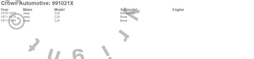 Crown Automotive is the premier manufacturer and distributor of quality replacement parts for Jeep® CJ™, Wrangler™, Cherokee™, Grand Cherokee™, Liberty™, and Commander™."From humble beginnings in 1963 in a small Boston storefront, Crown Automotive has consistently maintained its commitment to offering only quality parts and exceptional service. Today, with warehouses in Massachusetts, Georgia, Nevada, Spain, and the Czech Republic, totaling over 160,000 square feet, Crown Automotive continues to be the leader in quality replacement parts for Jeep® vehicles. With over 8,000 different parts in stock for Jeep® vehicles from 1942 on up, Crown has the largest stock of replacement parts for Jeep® vehicles, including factory-discontinued parts. In fact, many of the older Jeeps are still on (and off) the road thanks to Crown parts. The Crown line consists of axle, body, brake, clutch, cooling, driveline, electrical, engine, exhaust, fuel, steering, suspension, transmission and transfer case components. Crown Automotive also offers an exclusive line of component kits and accessory products. Because we know that Jeeps are driven harder than most other vehicles, we emphasize offering only quality parts. In fact, we test parts on Jeeps before distributing them to our dealers to insure that they meet our standards for quality. Crown also supports its entire line with a 12 month/12,000 mile warranty to insure our dealers and their customers of our commitment to offering quality parts. We know from experience that Jeep® owners would rather pay a little more for a good quality part that's backed by a strong guarantee. But we know that price is important as well. So, not only will you find Crown parts to be of exceptional quality, but you'll find them at a great price too.