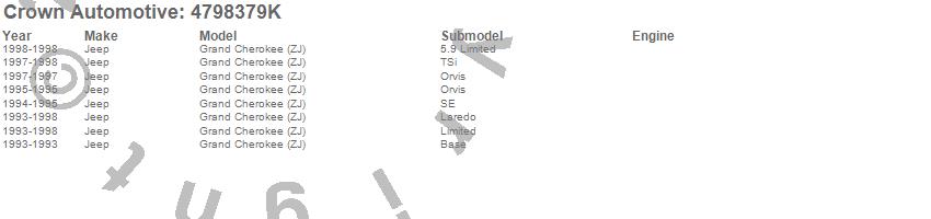Crown Automotive is the premier manufacturer and distributor of quality replacement parts for Jeep® CJ™, Wrangler™, Cherokee™, Grand Cherokee™, Liberty™, and Commander™."From humble beginnings in 1963 in a small Boston storefront, Crown Automotive has consistently maintained its commitment to offering only quality parts and exceptional service. Today, with warehouses in Massachusetts, Georgia, Nevada, Spain, and the Czech Republic, totaling over 160,000 square feet, Crown Automotive continues to be the leader in quality replacement parts for Jeep® vehicles. With over 8,000 different parts in stock for Jeep® vehicles from 1942 on up, Crown has the largest stock of replacement parts for Jeep® vehicles, including factory-discontinued parts. In fact, many of the older Jeeps are still on (and off) the road thanks to Crown parts. The Crown line consists of axle, body, brake, clutch, cooling, driveline, electrical, engine, exhaust, fuel, steering, suspension, transmission and transfer case components. Crown Automotive also offers an exclusive line of component kits and accessory products. Because we know that Jeeps are driven harder than most other vehicles, we emphasize offering only quality parts. In fact, we test parts on Jeeps before distributing them to our dealers to insure that they meet our standards for quality. Crown also supports its entire line with a 12 month/12,000 mile warranty to insure our dealers and their customers of our commitment to offering quality parts. We know from experience that Jeep® owners would rather pay a little more for a good quality part that's backed by a strong guarantee. But we know that price is important as well. So, not only will you find Crown parts to be of exceptional quality, but you'll find them at a great price too.
