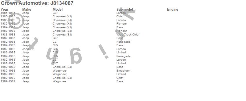Crown Automotive is the premier manufacturer and distributor of quality replacement parts for Jeep® CJ™, Wrangler™, Cherokee™, Grand Cherokee™, Liberty™, and Commander™."From humble beginnings in 1963 in a small Boston storefront, Crown Automotive has consistently maintained its commitment to offering only quality parts and exceptional service. Today, with warehouses in Massachusetts, Georgia, Nevada, Spain, and the Czech Republic, totaling over 160,000 square feet, Crown Automotive continues to be the leader in quality replacement parts for Jeep® vehicles. With over 8,000 different parts in stock for Jeep® vehicles from 1942 on up, Crown has the largest stock of replacement parts for Jeep® vehicles, including factory-discontinued parts. In fact, many of the older Jeeps are still on (and off) the road thanks to Crown parts. The Crown line consists of axle, body, brake, clutch, cooling, driveline, electrical, engine, exhaust, fuel, steering, suspension, transmission and transfer case components. Crown Automotive also offers an exclusive line of component kits and accessory products. Because we know that Jeeps are driven harder than most other vehicles, we emphasize offering only quality parts. In fact, we test parts on Jeeps before distributing them to our dealers to insure that they meet our standards for quality. Crown also supports its entire line with a 12 month/12,000 mile warranty to insure our dealers and their customers of our commitment to offering quality parts. We know from experience that Jeep® owners would rather pay a little more for a good quality part that's backed by a strong guarantee. But we know that price is important as well. So, not only will you find Crown parts to be of exceptional quality, but you'll find them at a great price too.