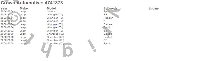 Crown Automotive is the premier manufacturer and distributor of quality replacement parts for Jeep® CJ™, Wrangler™, Cherokee™, Grand Cherokee™, Liberty™, and Commander™."From humble beginnings in 1963 in a small Boston storefront, Crown Automotive has consistently maintained its commitment to offering only quality parts and exceptional service. Today, with warehouses in Massachusetts, Georgia, Nevada, Spain, and the Czech Republic, totaling over 160,000 square feet, Crown Automotive continues to be the leader in quality replacement parts for Jeep® vehicles. With over 8,000 different parts in stock for Jeep® vehicles from 1942 on up, Crown has the largest stock of replacement parts for Jeep® vehicles, including factory-discontinued parts. In fact, many of the older Jeeps are still on (and off) the road thanks to Crown parts. The Crown line consists of axle, body, brake, clutch, cooling, driveline, electrical, engine, exhaust, fuel, steering, suspension, transmission and transfer case components. Crown Automotive also offers an exclusive line of component kits and accessory products. Because we know that Jeeps are driven harder than most other vehicles, we emphasize offering only quality parts. In fact, we test parts on Jeeps before distributing them to our dealers to insure that they meet our standards for quality. Crown also supports its entire line with a 12 month/12,000 mile warranty to insure our dealers and their customers of our commitment to offering quality parts. We know from experience that Jeep® owners would rather pay a little more for a good quality part that's backed by a strong guarantee. But we know that price is important as well. So, not only will you find Crown parts to be of exceptional quality, but you'll find them at a great price too.