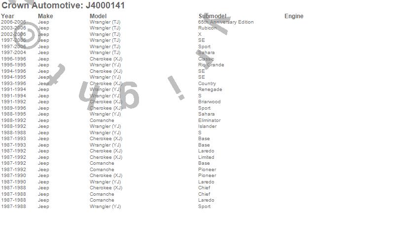 Cherokee (XJ), Comanche, Wrangler (TJ), Wrangler (YJ), Jeep, 2006, 2005, 2004, 2003, 2002, 2001, 2000, 1999, 1998, 1997, 1996, 1995, 1994, 1993, 1992 more…
