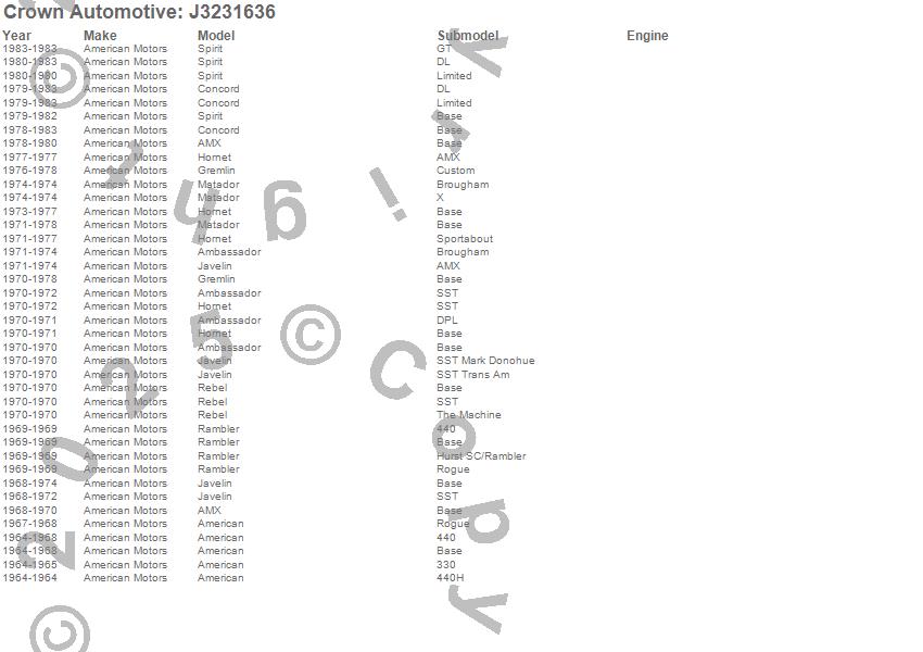 Ambassador, American, AMX, Concord, Gremlin, Hornet, Javelin, Matador, Rambler, Rebel, Spirit, American Motors, 1983, 1982, 1981, 1980, 1979, 1978, 1977, 1976 more…