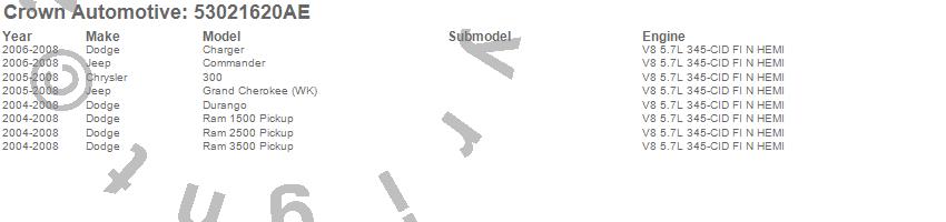 300, Charger, Commander, Durango, Grand Cherokee (WK), Ram 1500, Ram 2500, Ram 3500, Chrysler, Dodge, Jeep, 2008, 2007, 2006, 2005, 2004 more…