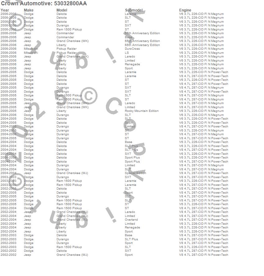 Commander, Dakota, Durango, Grand Cherokee (WJ), Grand Cherokee (WK), Liberty, Raider, Ram 1500, Dodge, Jeep, Mitsubishi, 2006, 2005, 2004, 2003, 2002 more…