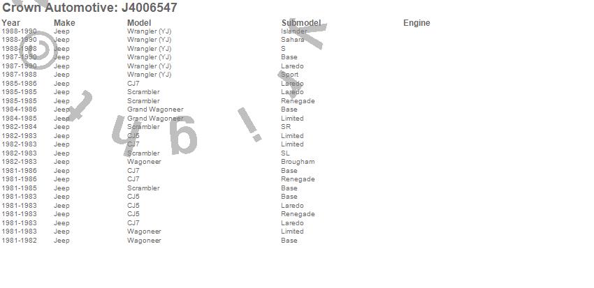 CJ5, CJ7, Grand Wagoneer, Scrambler, Wagoneer, Wrangler (YJ), Jeep, 1990, 1989, 1988, 1987, 1986, 1985, 1984, 1983, 1982, 1981 more…