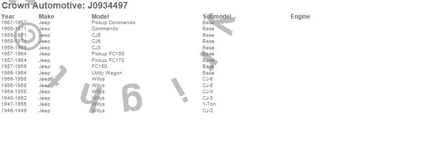 Crown Automotive is the premier manufacturer and distributor of quality replacement parts for Jeep® CJ™, Wrangler™, Cherokee™, Grand Cherokee™, Liberty™, and Commander™."From humble beginnings in 1963 in a small Boston storefront, Crown Automotive has consistently maintained its commitment to offering only quality parts and exceptional service. Today, with warehouses in Massachusetts, Georgia, Nevada, Spain, and the Czech Republic, totaling over 160,000 square feet, Crown Automotive continues to be the leader in quality replacement parts for Jeep® vehicles. With over 8,000 different parts in stock for Jeep® vehicles from 1942 on up, Crown has the largest stock of replacement parts for Jeep® vehicles, including factory-discontinued parts. In fact, many of the older Jeeps are still on (and off) the road thanks to Crown parts. The Crown line consists of axle, body, brake, clutch, cooling, driveline, electrical, engine, exhaust, fuel, steering, suspension, transmission and transfer case components. Crown Automotive also offers an exclusive line of component kits and accessory products. Because we know that Jeeps are driven harder than most other vehicles, we emphasize offering only quality parts. In fact, we test parts on Jeeps before distributing them to our dealers to insure that they meet our standards for quality. Crown also supports its entire line with a 12 month/12,000 mile warranty to insure our dealers and their customers of our commitment to offering quality parts. We know from experience that Jeep® owners would rather pay a little more for a good quality part that's backed by a strong guarantee. But we know that price is important as well. So, not only will you find Crown parts to be of exceptional quality, but you'll find them at a great price too.
