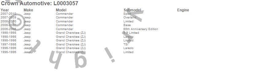 Crown Automotive is the premier manufacturer and distributor of quality replacement parts for Jeep® CJ™, Wrangler™, Cherokee™, Grand Cherokee™, Liberty™, and Commander™."From humble beginnings in 1963 in a small Boston storefront, Crown Automotive has consistently maintained its commitment to offering only quality parts and exceptional service. Today, with warehouses in Massachusetts, Georgia, Nevada, Spain, and the Czech Republic, totaling over 160,000 square feet, Crown Automotive continues to be the leader in quality replacement parts for Jeep® vehicles. With over 8,000 different parts in stock for Jeep® vehicles from 1942 on up, Crown has the largest stock of replacement parts for Jeep® vehicles, including factory-discontinued parts. In fact, many of the older Jeeps are still on (and off) the road thanks to Crown parts. The Crown line consists of axle, body, brake, clutch, cooling, driveline, electrical, engine, exhaust, fuel, steering, suspension, transmission and transfer case components. Crown Automotive also offers an exclusive line of component kits and accessory products. Because we know that Jeeps are driven harder than most other vehicles, we emphasize offering only quality parts. In fact, we test parts on Jeeps before distributing them to our dealers to insure that they meet our standards for quality. Crown also supports its entire line with a 12 month/12,000 mile warranty to insure our dealers and their customers of our commitment to offering quality parts. We know from experience that Jeep® owners would rather pay a little more for a good quality part that's backed by a strong guarantee. But we know that price is important as well. So, not only will you find Crown parts to be of exceptional quality, but you'll find them at a great price too.