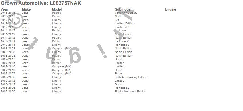 Crown Automotive is the premier manufacturer and distributor of quality replacement parts for Jeep® CJ™, Wrangler™, Cherokee™, Grand Cherokee™, Liberty™, and Commander™."From humble beginnings in 1963 in a small Boston storefront, Crown Automotive has consistently maintained its commitment to offering only quality parts and exceptional service. Today, with warehouses in Massachusetts, Georgia, Nevada, Spain, and the Czech Republic, totaling over 160,000 square feet, Crown Automotive continues to be the leader in quality replacement parts for Jeep® vehicles. With over 8,000 different parts in stock for Jeep® vehicles from 1942 on up, Crown has the largest stock of replacement parts for Jeep® vehicles, including factory-discontinued parts. In fact, many of the older Jeeps are still on (and off) the road thanks to Crown parts. The Crown line consists of axle, body, brake, clutch, cooling, driveline, electrical, engine, exhaust, fuel, steering, suspension, transmission and transfer case components. Crown Automotive also offers an exclusive line of component kits and accessory products. Because we know that Jeeps are driven harder than most other vehicles, we emphasize offering only quality parts. In fact, we test parts on Jeeps before distributing them to our dealers to insure that they meet our standards for quality. Crown also supports its entire line with a 12 month/12,000 mile warranty to insure our dealers and their customers of our commitment to offering quality parts. We know from experience that Jeep® owners would rather pay a little more for a good quality part that's backed by a strong guarantee. But we know that price is important as well. So, not only will you find Crown parts to be of exceptional quality, but you'll find them at a great price too.
