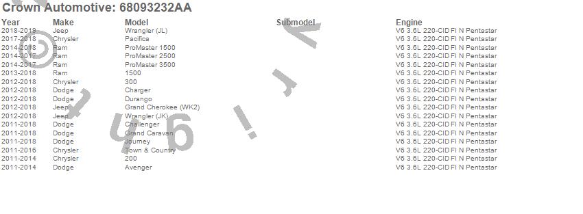 1500, 200, 300, Avenger, Challenger, Charger, Cherokee (KL), Durango, Grand Caravan, Grand Cherokee (WK2), Journey, ProMaster 1500, ProMaster 2500, ProMaster 3500, Town & Country, Wrangler (JK), Chrysler, Dodge, Jeep, Ram more…