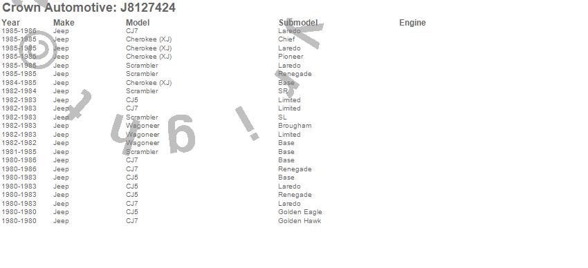 Crown Automotive is the premier manufacturer and distributor of quality replacement parts for Jeep® CJ™, Wrangler™, Cherokee™, Grand Cherokee™, Liberty™, and Commander™."From humble beginnings in 1963 in a small Boston storefront, Crown Automotive has consistently maintained its commitment to offering only quality parts and exceptional service. Today, with warehouses in Massachusetts, Georgia, Nevada, Spain, and the Czech Republic, totaling over 160,000 square feet, Crown Automotive continues to be the leader in quality replacement parts for Jeep® vehicles. With over 8,000 different parts in stock for Jeep® vehicles from 1942 on up, Crown has the largest stock of replacement parts for Jeep® vehicles, including factory-discontinued parts. In fact, many of the older Jeeps are still on (and off) the road thanks to Crown parts. The Crown line consists of axle, body, brake, clutch, cooling, driveline, electrical, engine, exhaust, fuel, steering, suspension, transmission and transfer case components. Crown Automotive also offers an exclusive line of component kits and accessory products. Because we know that Jeeps are driven harder than most other vehicles, we emphasize offering only quality parts. In fact, we test parts on Jeeps before distributing them to our dealers to insure that they meet our standards for quality. Crown also supports its entire line with a 12 month/12,000 mile warranty to insure our dealers and their customers of our commitment to offering quality parts. We know from experience that Jeep® owners would rather pay a little more for a good quality part that's backed by a strong guarantee. But we know that price is important as well. So, not only will you find Crown parts to be of exceptional quality, but you'll find them at a great price too.