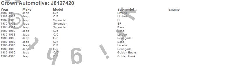 Crown Automotive is the premier manufacturer and distributor of quality replacement parts for Jeep® CJ™, Wrangler™, Cherokee™, Grand Cherokee™, Liberty™, and Commander™."From humble beginnings in 1963 in a small Boston storefront, Crown Automotive has consistently maintained its commitment to offering only quality parts and exceptional service. Today, with warehouses in Massachusetts, Georgia, Nevada, Spain, and the Czech Republic, totaling over 160,000 square feet, Crown Automotive continues to be the leader in quality replacement parts for Jeep® vehicles. With over 8,000 different parts in stock for Jeep® vehicles from 1942 on up, Crown has the largest stock of replacement parts for Jeep® vehicles, including factory-discontinued parts. In fact, many of the older Jeeps are still on (and off) the road thanks to Crown parts. The Crown line consists of axle, body, brake, clutch, cooling, driveline, electrical, engine, exhaust, fuel, steering, suspension, transmission and transfer case components. Crown Automotive also offers an exclusive line of component kits and accessory products. Because we know that Jeeps are driven harder than most other vehicles, we emphasize offering only quality parts. In fact, we test parts on Jeeps before distributing them to our dealers to insure that they meet our standards for quality. Crown also supports its entire line with a 12 month/12,000 mile warranty to insure our dealers and their customers of our commitment to offering quality parts. We know from experience that Jeep® owners would rather pay a little more for a good quality part that's backed by a strong guarantee. But we know that price is important as well. So, not only will you find Crown parts to be of exceptional quality, but you'll find them at a great price too.