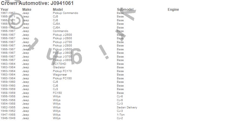 1-Ton Pickup, CJ-2A, CJ-3A, CJ-3B, CJ5, CJ5A, CJ6, CJ6A, Commando, FC150, FC170, FC170HD, Gladiator, J-2500, J-2600, J-2700, J-2800, J-3500, J-3600, J-3700 more…
