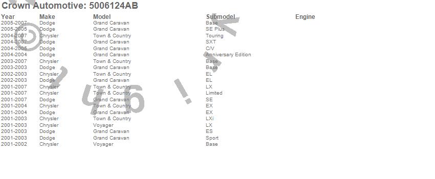 Grand Caravan, Town & Country, Voyager, Chrysler, Dodge, 2007, 2006, 2005, 2004, 2003, 2002, 2001 more…