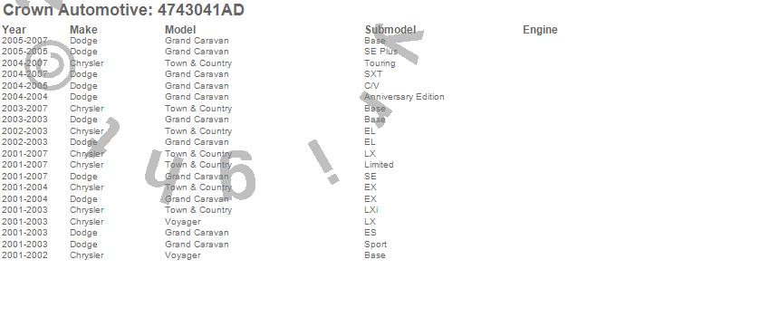 Grand Caravan, Town & Country, Voyager, Chrysler, Dodge, 2007, 2006, 2005, 2004, 2003, 2002, 2001 more…