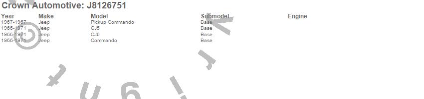 Crown Automotive is the premier manufacturer and distributor of quality replacement parts for Jeep® CJ™, Wrangler™, Cherokee™, Grand Cherokee™, Liberty™, and Commander™."From humble beginnings in 1963 in a small Boston storefront, Crown Automotive has consistently maintained its commitment to offering only quality parts and exceptional service. Today, with warehouses in Massachusetts, Georgia, Nevada, Spain, and the Czech Republic, totaling over 160,000 square feet, Crown Automotive continues to be the leader in quality replacement parts for Jeep® vehicles. With over 8,000 different parts in stock for Jeep® vehicles from 1942 on up, Crown has the largest stock of replacement parts for Jeep® vehicles, including factory-discontinued parts. In fact, many of the older Jeeps are still on (and off) the road thanks to Crown parts. The Crown line consists of axle, body, brake, clutch, cooling, driveline, electrical, engine, exhaust, fuel, steering, suspension, transmission and transfer case components. Crown Automotive also offers an exclusive line of component kits and accessory products. Because we know that Jeeps are driven harder than most other vehicles, we emphasize offering only quality parts. In fact, we test parts on Jeeps before distributing them to our dealers to insure that they meet our standards for quality. Crown also supports its entire line with a 12 month/12,000 mile warranty to insure our dealers and their customers of our commitment to offering quality parts. We know from experience that Jeep® owners would rather pay a little more for a good quality part that's backed by a strong guarantee. But we know that price is important as well. So, not only will you find Crown parts to be of exceptional quality, but you'll find them at a great price too.