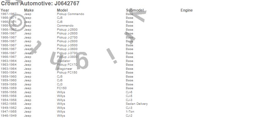 1-Ton Pickup, CJ-2A, CJ-3A, CJ-3B, CJ5, CJ6, Commando, FC150, FC170, Gladiator, J-2500, J-2600, J-2700, J-2800, J-3500, J-3600, J-3700, J-3800, M38, M38A1 more…