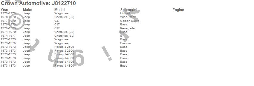 Cherokee (SJ), CJ7, J-2500, J-2600, J-4500, J-4600, J-4700, J-4800, Wagoneer, Jeep, 1979, 1978, 1977, 1976, 1975, 1974, 1973 more…