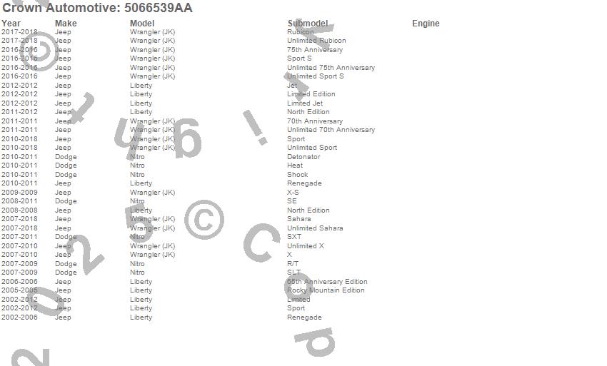 Liberty, Nitro, Wrangler (JK), Dodge, Jeep, 2015, 2014, 2013, 2012, 2011, 2010, 2009, 2008, 2007, 2006, 2005, 2004, 2003, 2002 more…