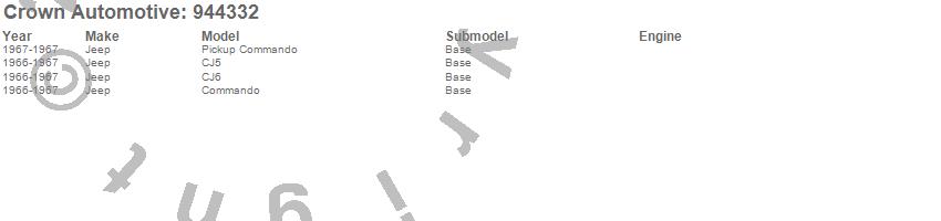 Crown Automotive is the premier manufacturer and distributor of quality replacement parts for Jeep® CJ™, Wrangler™, Cherokee™, Grand Cherokee™, Liberty™, and Commander™."From humble beginnings in 1963 in a small Boston storefront, Crown Automotive has consistently maintained its commitment to offering only quality parts and exceptional service. Today, with warehouses in Massachusetts, Georgia, Nevada, Spain, and the Czech Republic, totaling over 160,000 square feet, Crown Automotive continues to be the leader in quality replacement parts for Jeep® vehicles. With over 8,000 different parts in stock for Jeep® vehicles from 1942 on up, Crown has the largest stock of replacement parts for Jeep® vehicles, including factory-discontinued parts. In fact, many of the older Jeeps are still on (and off) the road thanks to Crown parts. The Crown line consists of axle, body, brake, clutch, cooling, driveline, electrical, engine, exhaust, fuel, steering, suspension, transmission and transfer case components. Crown Automotive also offers an exclusive line of component kits and accessory products. Because we know that Jeeps are driven harder than most other vehicles, we emphasize offering only quality parts. In fact, we test parts on Jeeps before distributing them to our dealers to insure that they meet our standards for quality. Crown also supports its entire line with a 12 month/12,000 mile warranty to insure our dealers and their customers of our commitment to offering quality parts. We know from experience that Jeep® owners would rather pay a little more for a good quality part that's backed by a strong guarantee. But we know that price is important as well. So, not only will you find Crown parts to be of exceptional quality, but you'll find them at a great price too.