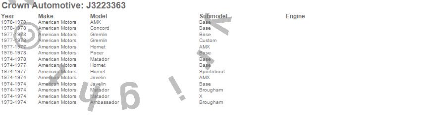 Crown Automotive is the premier manufacturer and distributor of quality replacement parts for Jeep® CJ™, Wrangler™, Cherokee™, Grand Cherokee™, Liberty™, and Commander™."From humble beginnings in 1963 in a small Boston storefront, Crown Automotive has consistently maintained its commitment to offering only quality parts and exceptional service. Today, with warehouses in Massachusetts, Georgia, Nevada, Spain, and the Czech Republic, totaling over 160,000 square feet, Crown Automotive continues to be the leader in quality replacement parts for Jeep® vehicles. With over 8,000 different parts in stock for Jeep® vehicles from 1942 on up, Crown has the largest stock of replacement parts for Jeep® vehicles, including factory-discontinued parts. In fact, many of the older Jeeps are still on (and off) the road thanks to Crown parts. The Crown line consists of axle, body, brake, clutch, cooling, driveline, electrical, engine, exhaust, fuel, steering, suspension, transmission and transfer case components. Crown Automotive also offers an exclusive line of component kits and accessory products. Because we know that Jeeps are driven harder than most other vehicles, we emphasize offering only quality parts. In fact, we test parts on Jeeps before distributing them to our dealers to insure that they meet our standards for quality. Crown also supports its entire line with a 12 month/12,000 mile warranty to insure our dealers and their customers of our commitment to offering quality parts. We know from experience that Jeep® owners would rather pay a little more for a good quality part that's backed by a strong guarantee. But we know that price is important as well. So, not only will you find Crown parts to be of exceptional quality, but you'll find them at a great price too.
