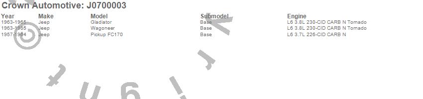 Crown Automotive is the premier manufacturer and distributor of quality replacement parts for Jeep® CJ™, Wrangler™, Cherokee™, Grand Cherokee™, Liberty™, and Commander™."From humble beginnings in 1963 in a small Boston storefront, Crown Automotive has consistently maintained its commitment to offering only quality parts and exceptional service. Today, with warehouses in Massachusetts, Georgia, Nevada, Spain, and the Czech Republic, totaling over 160,000 square feet, Crown Automotive continues to be the leader in quality replacement parts for Jeep® vehicles. With over 8,000 different parts in stock for Jeep® vehicles from 1942 on up, Crown has the largest stock of replacement parts for Jeep® vehicles, including factory-discontinued parts. In fact, many of the older Jeeps are still on (and off) the road thanks to Crown parts. The Crown line consists of axle, body, brake, clutch, cooling, driveline, electrical, engine, exhaust, fuel, steering, suspension, transmission and transfer case components. Crown Automotive also offers an exclusive line of component kits and accessory products. Because we know that Jeeps are driven harder than most other vehicles, we emphasize offering only quality parts. In fact, we test parts on Jeeps before distributing them to our dealers to insure that they meet our standards for quality. Crown also supports its entire line with a 12 month/12,000 mile warranty to insure our dealers and their customers of our commitment to offering quality parts. We know from experience that Jeep® owners would rather pay a little more for a good quality part that's backed by a strong guarantee. But we know that price is important as well. So, not only will you find Crown parts to be of exceptional quality, but you'll find them at a great price too.