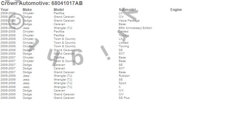 Caravan, Grand Caravan, Pacifica, Town & Country, Wrangler (TJ), Chrysler, Dodge, Jeep, 2008, 2007, 2006, 2005 more…