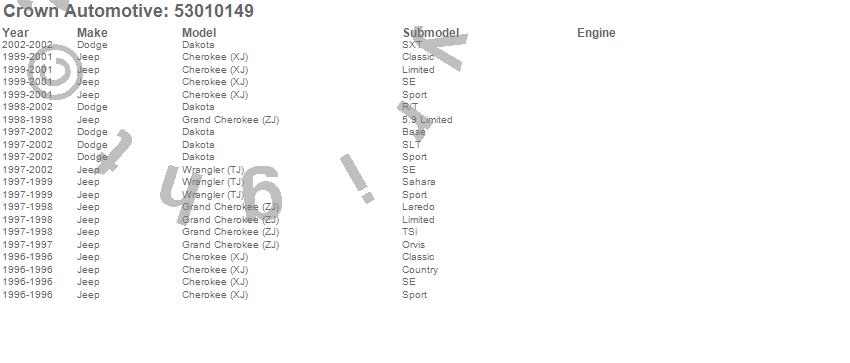 Cherokee (XJ), Dakota, Grand Cherokee (ZJ), Wrangler (TJ), Dodge, Jeep, 2002, 2001, 2000, 1999, 1998, 1997, 1996 more…