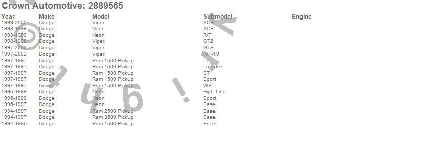 Neon, Ram 1500, Ram 2500, Ram 3500, Viper, Dodge, 2002, 2001, 2000, 1999, 1998, 1997, 1996, 1995, 1994 more…