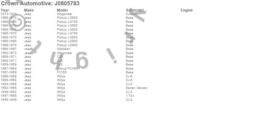1-Ton Pickup, CJ-2A, CJ-3A, CJ-3B, CJ5, CJ6, FC150, Gladiator, J-2500, J-2600, J-2700, J-2800, J-3500, J-3600, J-3700, J-3800, M38, M38A1, Sedan Delivery, Wagoneer more…