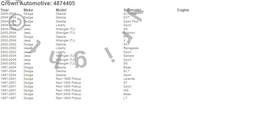 Dakota, Liberty, Ram 1500, Ram 3500, Wrangler (TJ), Dodge, Jeep, 2004, 2003, 2002, 2001, 2000, 1999, 1998, 1997 more…