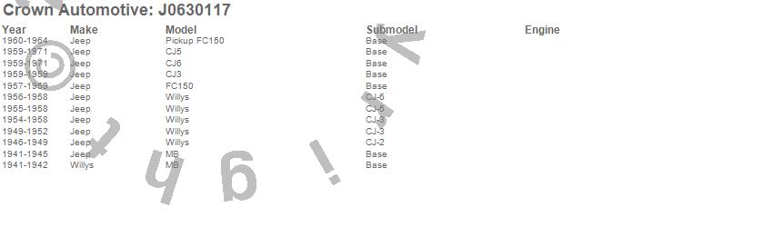 Crown Automotive is the premier manufacturer and distributor of quality replacement parts for Jeep® CJ™, Wrangler™, Cherokee™, Grand Cherokee™, Liberty™, and Commander™."From humble beginnings in 1963 in a small Boston storefront, Crown Automotive has consistently maintained its commitment to offering only quality parts and exceptional service. Today, with warehouses in Massachusetts, Georgia, Nevada, Spain, and the Czech Republic, totaling over 160,000 square feet, Crown Automotive continues to be the leader in quality replacement parts for Jeep® vehicles. With over 8,000 different parts in stock for Jeep® vehicles from 1942 on up, Crown has the largest stock of replacement parts for Jeep® vehicles, including factory-discontinued parts. In fact, many of the older Jeeps are still on (and off) the road thanks to Crown parts. The Crown line consists of axle, body, brake, clutch, cooling, driveline, electrical, engine, exhaust, fuel, steering, suspension, transmission and transfer case components. Crown Automotive also offers an exclusive line of component kits and accessory products. Because we know that Jeeps are driven harder than most other vehicles, we emphasize offering only quality parts. In fact, we test parts on Jeeps before distributing them to our dealers to insure that they meet our standards for quality. Crown also supports its entire line with a 12 month/12,000 mile warranty to insure our dealers and their customers of our commitment to offering quality parts. We know from experience that Jeep® owners would rather pay a little more for a good quality part that's backed by a strong guarantee. But we know that price is important as well. So, not only will you find Crown parts to be of exceptional quality, but you'll find them at a great price too.