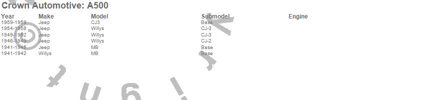 Crown Automotive is the premier manufacturer and distributor of quality replacement parts for Jeep® CJ™, Wrangler™, Cherokee™, Grand Cherokee™, Liberty™, and Commander™."From humble beginnings in 1963 in a small Boston storefront, Crown Automotive has consistently maintained its commitment to offering only quality parts and exceptional service. Today, with warehouses in Massachusetts, Georgia, Nevada, Spain, and the Czech Republic, totaling over 160,000 square feet, Crown Automotive continues to be the leader in quality replacement parts for Jeep® vehicles. With over 8,000 different parts in stock for Jeep® vehicles from 1942 on up, Crown has the largest stock of replacement parts for Jeep® vehicles, including factory-discontinued parts. In fact, many of the older Jeeps are still on (and off) the road thanks to Crown parts. The Crown line consists of axle, body, brake, clutch, cooling, driveline, electrical, engine, exhaust, fuel, steering, suspension, transmission and transfer case components. Crown Automotive also offers an exclusive line of component kits and accessory products. Because we know that Jeeps are driven harder than most other vehicles, we emphasize offering only quality parts. In fact, we test parts on Jeeps before distributing them to our dealers to insure that they meet our standards for quality. Crown also supports its entire line with a 12 month/12,000 mile warranty to insure our dealers and their customers of our commitment to offering quality parts. We know from experience that Jeep® owners would rather pay a little more for a good quality part that's backed by a strong guarantee. But we know that price is important as well. So, not only will you find Crown parts to be of exceptional quality, but you'll find them at a great price too.