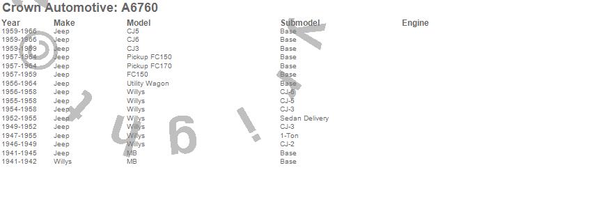 Crown Automotive is the premier manufacturer and distributor of quality replacement parts for Jeep® CJ™, Wrangler™, Cherokee™, Grand Cherokee™, Liberty™, and Commander™."From humble beginnings in 1963 in a small Boston storefront, Crown Automotive has consistently maintained its commitment to offering only quality parts and exceptional service. Today, with warehouses in Massachusetts, Georgia, Nevada, Spain, and the Czech Republic, totaling over 160,000 square feet, Crown Automotive continues to be the leader in quality replacement parts for Jeep® vehicles. With over 8,000 different parts in stock for Jeep® vehicles from 1942 on up, Crown has the largest stock of replacement parts for Jeep® vehicles, including factory-discontinued parts. In fact, many of the older Jeeps are still on (and off) the road thanks to Crown parts. The Crown line consists of axle, body, brake, clutch, cooling, driveline, electrical, engine, exhaust, fuel, steering, suspension, transmission and transfer case components. Crown Automotive also offers an exclusive line of component kits and accessory products. Because we know that Jeeps are driven harder than most other vehicles, we emphasize offering only quality parts. In fact, we test parts on Jeeps before distributing them to our dealers to insure that they meet our standards for quality. Crown also supports its entire line with a 12 month/12,000 mile warranty to insure our dealers and their customers of our commitment to offering quality parts. We know from experience that Jeep® owners would rather pay a little more for a good quality part that's backed by a strong guarantee. But we know that price is important as well. So, not only will you find Crown parts to be of exceptional quality, but you'll find them at a great price too.