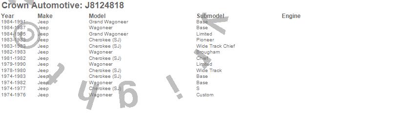 Cherokee (SJ), Grand Wagoneer, Wagoneer, Jeep, 1991, 1990, 1989, 1988, 1987, 1986, 1985, 1984, 1983, 1982, 1981, 1980, 1979, 1978, 1977, 1976 more…