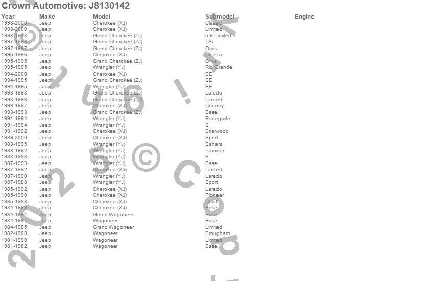 Cherokee (XJ), Grand Cherokee (ZJ), Grand Wagoneer, Wagoneer, Wrangler (YJ), Jeep, 2000, 1999, 1998, 1997, 1996, 1995, 1994, 1993, 1992, 1991, 1990, 1989, 1988, 1987 more…
