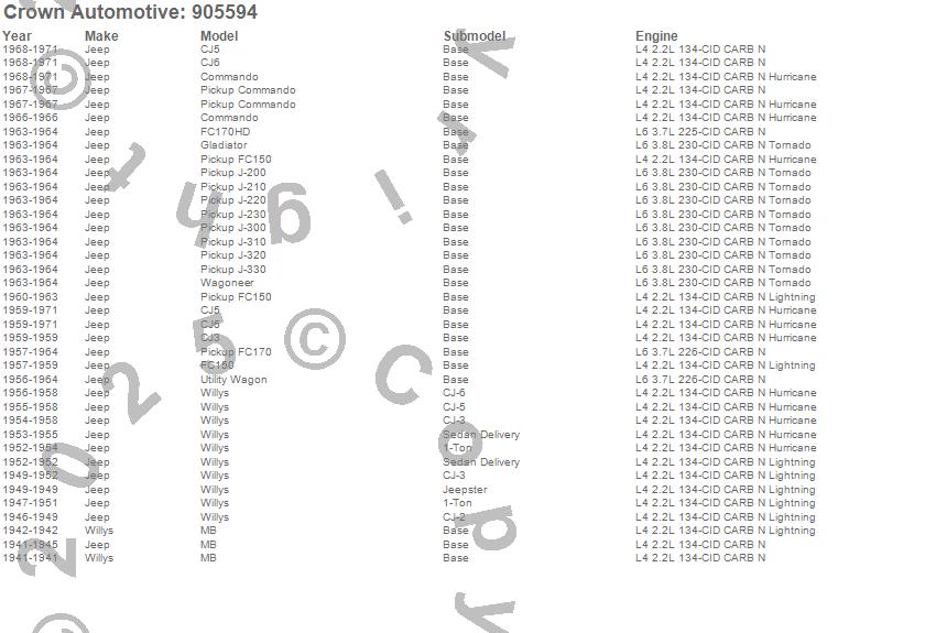 1-Ton Pickup, CJ-2A, CJ-3A, CJ-3B, CJ5, CJ6, Commando, FC150, FC170, FC170HD, Gladiator, J-200, J-210, J-220, J-230, J-2500, J-300, J-310, J-320, J-330 more…