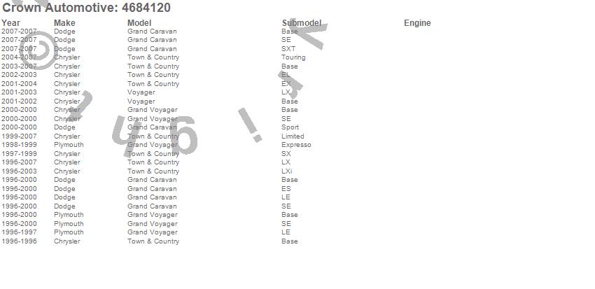 Grand Caravan, Grand Voyager, Town & Country, Voyager, Chrysler, Dodge, Plymouth, 2007, 2006, 2005, 2004, 2003, 2002, 2001, 2000, 1999, 1998, 1997, 1996 more…