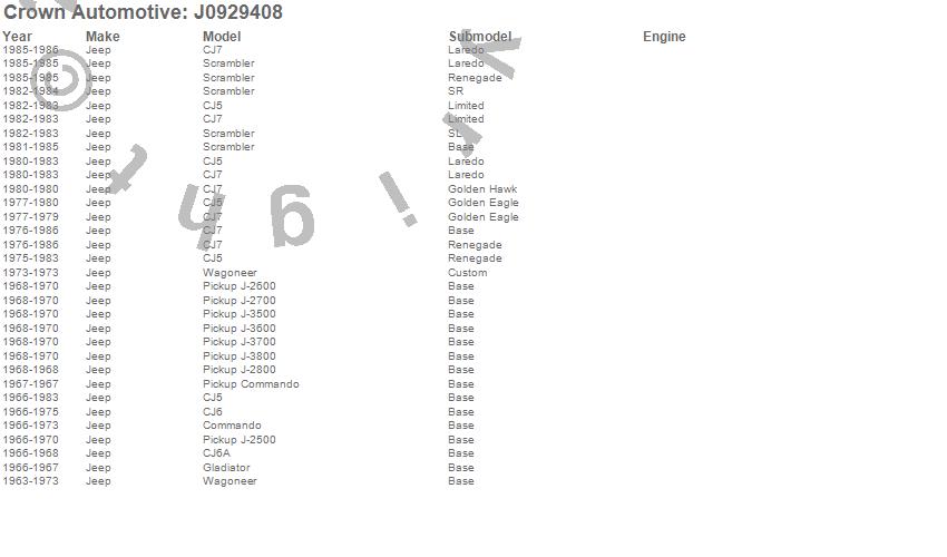 CJ5, CJ6, CJ6A, CJ7, Commando, Gladiator, J-2500, J-2600, J-2700, J-2800, J-3500, J-3600, J-3700, J-3800, Scrambler, Wagoneer, Jeep, 1986, 1985, 1984 more…