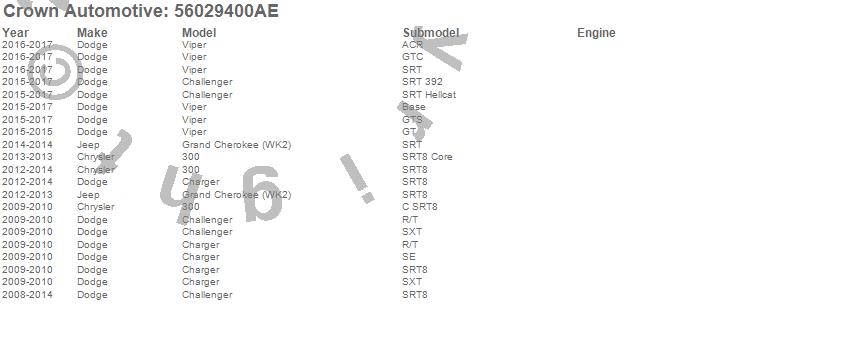 300, Challenger, Charger, Grand Cherokee (WK2), Viper, Chrysler, Dodge, Jeep, 2015, 2014, 2013, 2012, 2011, 2010, 2009, 2008 more…