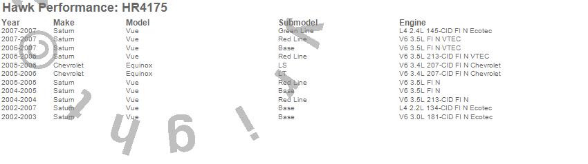 Below is an abreviated list of applications for the Sector 27 Rotor.