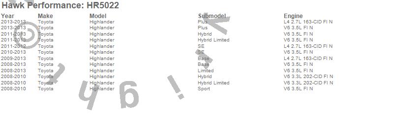 Below is an abreviated list of applications for the Sector 27 Rotor.
