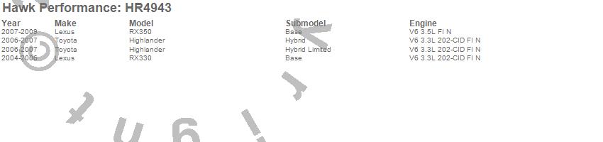 Below is an abreviated list of applications for the Sector 27 Rotor. Highlander, RX330, RX350, Lexus, Toyota, 2009, 2008, 2007, 2006, 2005, 2004 more…
