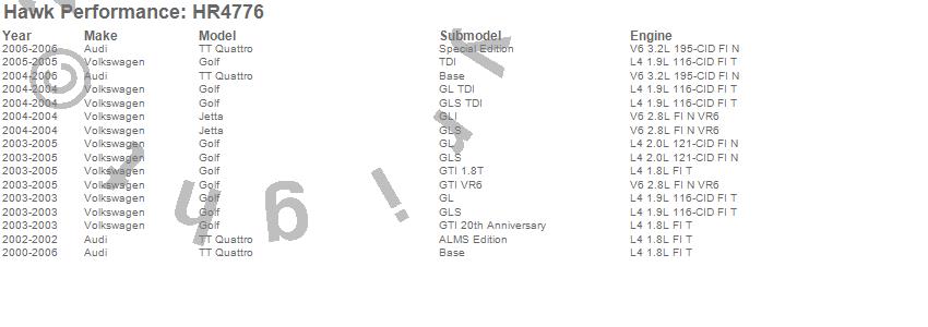 Below is an abreviated list of applications for the Sector 27 Rotor. Golf, Jetta, TT Quattro, Audi, Volkswagen, 2006, 2005, 2004, 2003, 2002, 2001, 2000 more…