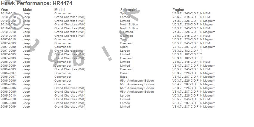 Below is an abreviated list of applications for the Sector 27 Rotor.