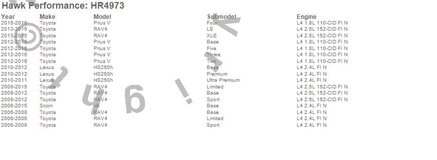 Below is an abreviated list of applications for the Sector 27 Rotor. HS250h, Prius V, RAV4, xB, Lexus, Scion, Toyota, 2014, 2013, 2012, 2011, 2010, 2009, 2008, 2007, 2006 more…