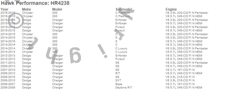 Below is an abreviated list of applications for the Sector 27 Rotor.
