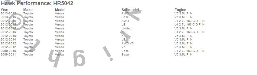 Below is an abreviated list of applications for the Sector 27 Rotor.