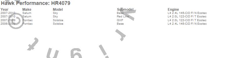 Below is an abreviated list of applications for the Sector 27 Rotor.