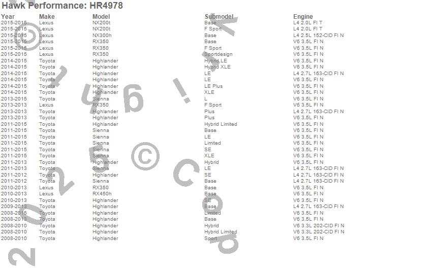 Below is an abreviated list of applications for the Sector 27 Rotor. Highlander, RX350, RX450h, Sienna, xD, Lexus, Scion, Toyota, 2014, 2013, 2012, 2011, 2010, 2009, 2008 more…